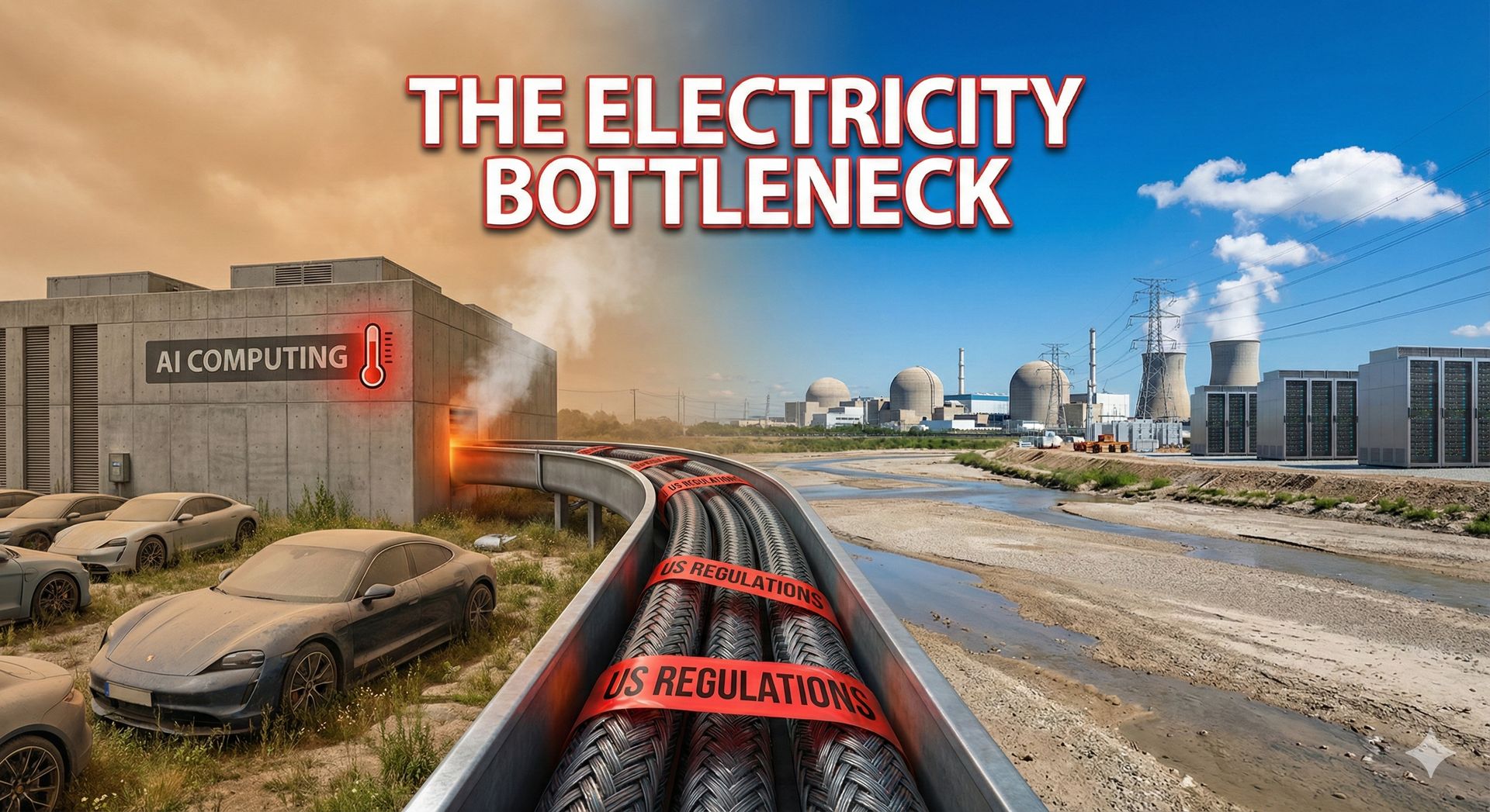 AI 모델을 돌리고 데이터를 처리하는 데이터 센터는 사실상 전기 먹는 하마거든. 근데 미국은 지금 규제랑 허가 문제 때문에 데이터 센터 짓는 속도가 너무 느려. 마치 고속도로를 깔아야 차가 달리는데, 도로 허가가 안 나서 스포츠카들이 주차장에 멈춰 있는 꼴이지.