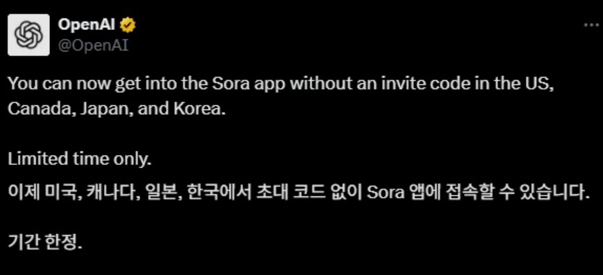미국, 캐나다, 일본 한국에서는 초대코드 없이 Sora 앱에 접속할 수 있다고 해!