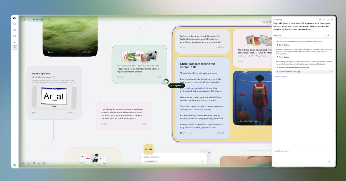 머릿속에 떠다니는 아이디어를 AI가 컨셉 보드로 그냥 뚝딱 만들어주는 기능이야.